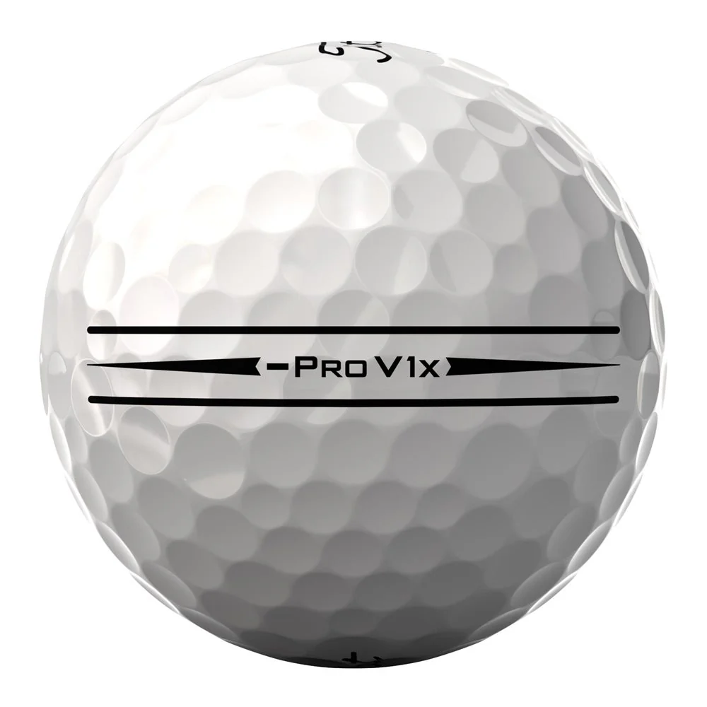 Pro V1x elevates players games with high flight, precise spin and control with longer distance and more consistency for total performance. Now featuring a premium, extended alignment sidestamp that gives players a visual aid for more precise aim and accuracy. Compared to Pro V1, Pro V1x will fly higher, spin more in the long game, and have a firmer feel. Outperform with the all-new Titleist Pro V1x.